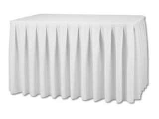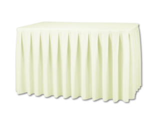 Elevate your event's decor with our elegant table skirting available for rent. Perfect for weddings, banquets, corporate events, and more, our table skirting adds a touch of sophistication to any occasion. Crafted from high-quality fabric, it drapes beautifully and is available in a variety of colors to match your theme. Easy to install and adjust, our skirting provides a polished and professional look, covering unsightly table legs and creating a seamless presentation. Whether you're hosting a small gathering or a large event, our table skirting is the perfect finishing touch to your table settings.